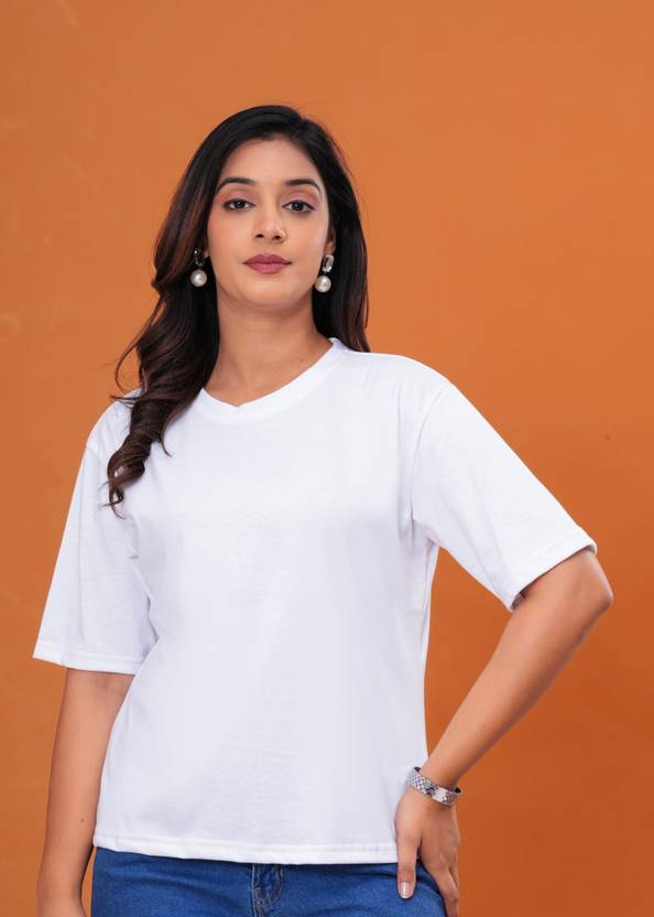 PURETEE Solid Women Round Neck White T-Shirt