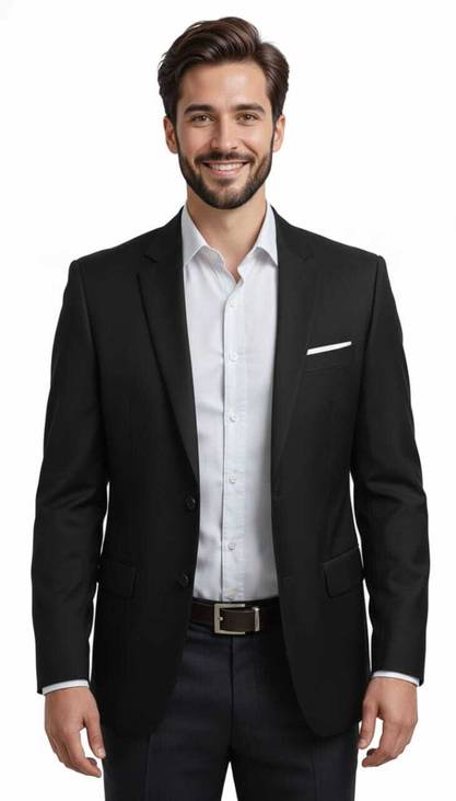 Made from premium breathable fabric, it features a smart slim fit, notched lapel, and two-button closure. Pair with trousers or jeans for a classy look. Comfortable, wrinkle-resistant, and tailored for Indian body types. Men's Black Blazer – perfect for office, formal events, parties, and weddings.