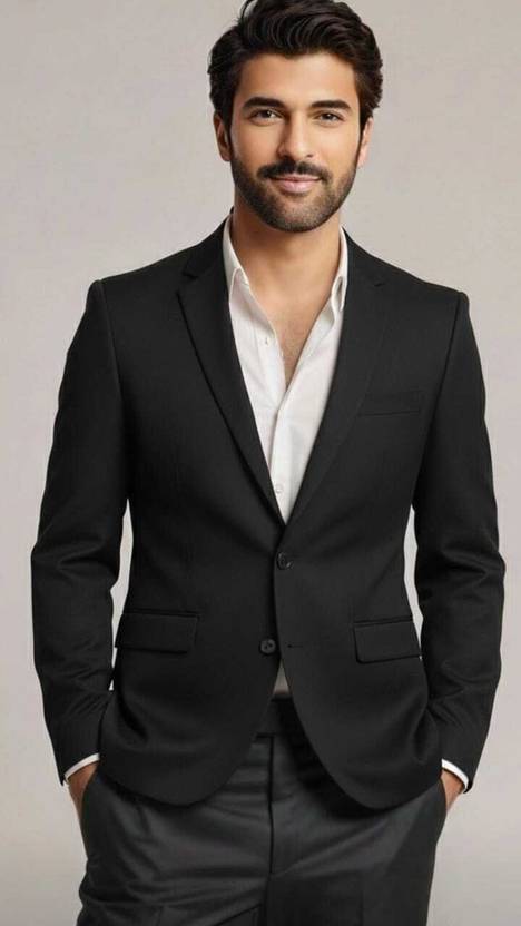 Made from premium breathable fabric, it features a smart slim fit, notched lapel, and two-button closure. Pair with trousers or jeans for a classy look. Comfortable, wrinkle-resistant, and tailored for Indian body types. Men's Black Blazer – perfect for office, formal events, parties, and weddings.