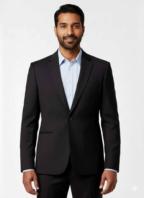 Made from premium breathable fabric, it features a smart slim fit, notched lapel, and two-button closure. Pair with trousers or jeans for a classy look. Comfortable, wrinkle-resistant, and tailored for Indian body types. Men's Black Blazer – perfect for office, formal events, parties, and weddings.