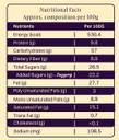 nutrient Content | - Energy: 530.4 kcal, Protein: 9.8 g, Carbohydrates: 57 g, Dietary Fiber: 8.9 g, Total Sugars: 26.5 g (including Added Sugars - Jaggery: 22.2 g), Fat: 27.7 g