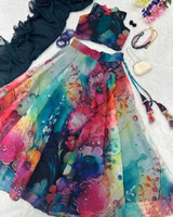 Featuring a floral print pattern, this women’s choli and lehenga set adds a touch of elegance to your wardrobe. The subtle floral motifs make this piece stand out while remaining versatile enough for various occasions. The print offers a timeless appeal that blends traditional aesthetics with contemporary trends, making it a go-to choice for weddings, festivals, and cultural events. The floral details provide a soft, feminine touch, ensuring it captures attention without overwhelming your look.