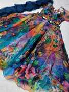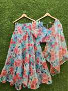 Trendy digital print, Soft Feel Fall Fabric, Light Weight, Full Ambrella Cut inner, 4 Meter Flared, trendy design
