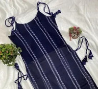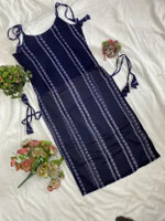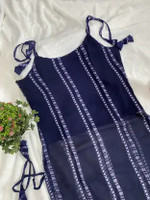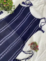 PuriMaa Women Striped Trail Cut Kurta (Dark Blue)