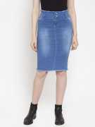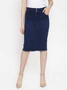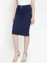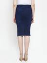 Purple Feather Washed Women Pencil Dark Blue Skirt