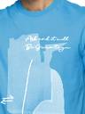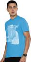 Men Printed, Typography Round Neck Cotton Blend Light Blue T-Shirt