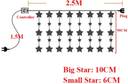 The fairy lights with 8 different lighting modes, including combination, in waves, sequential, slo-glo, chasing/flash, slow fade, twinkle/flash, and steady on. You can press the bottom button of the adaptor to choose the modes you like. IP44 Waterproof designed starry lights perfect for both indoor and outdoor decorations.High-brightness 12 Stars 138 LEDs, but not dazzling, create romantic atmosphere. 12 string lights in total, widespread lighting source with 138 brightness LEDs and 12 Stars (6 big, 0.6Ft?6 small, .03Ft) , like stars falling from the sky, create a romantic and warm atmosphere, Female plug at the end is connectable for more than one string, which makes you can connect max 5 sets together, meet your decorative length needs.