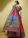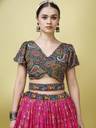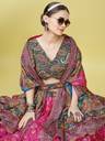 Elevate your ethnic wardrobe with our printed lehenga choli, a masterpiece designed to make you shine. Crafted from bright chinoon fabric, the lehenga boasts a vibrant canvas that captures attention from every angle. The gathered flare hemline creates a mesmerizing silhouette, swaying gracefully with each step you take. Intricate sequence work adorns the ensemble, adding a touch of sparkle and opulence that's perfect for celebratory occasions. With its fusion of striking design and rich detailing, this lehenga choli ensures you're the embodiment of elegance and grace at any event.