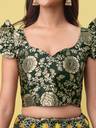 This Design Features Specific Furnished With Lotus Woven Motifs Into The Jacquard Fabric. Lehenga Fabric: - Jacquard, Choli Fabric: - Jacquard, Dupatta Fabric :- Jacquard,Dupatta Length : 2.20 mtr,Dupatta Width: 57cm,blouse Length: 1 mtr.