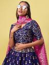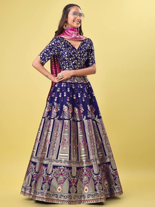 PURVAJA Floral Print Semi Stitched Lehenga Choli (Dark Blue)