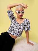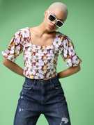 PURVAJA Party Floral Print Women Beige Top