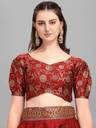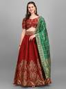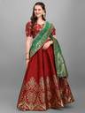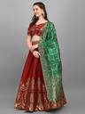 Choli Fabric: - Jacquard; Dupatta Fabric:- Jacquard; Be the prettiest bride in this Finished Jacquard bottle lehenga embellished with Zari work. Dupatta Length : 2.20 mtr; Dupatta Width: 57cm; blouse Length: 1 mtr. Product Consist 1 Choli 1 Lehenga 1 Dupatta; Style ( Pattern ) - Anarkali Lehenga. It is ideal for Navratri; Marriage; Ceremony and any Formal function. It can be worn casually in friends. It is a semi-stitched lehenga and unstitched blouse. You will be a center of attraction in the event once you wear it. The true mystery of excellent fashion and design is revealed with this exotic collection. Pair this piece with heels or flats and matching jewelry for a stunning look. This lehenga comes as Semi-stitch so you can be stitched according to your taste and preference. The lehenga fabric makes this lehenga easy to drape and carry all day long. All Accessories shown are for styling purposes only. Slight color variation may occur due to photographic reasons.