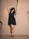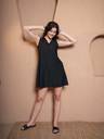 Crafted from soft, textured knitted fabric, this Western-inspired mini dress combines comfort with style. Featuring a flattering V-neckline and a sleeveless design, it enhances your silhouette while offering breathability for all-day wear. The A-line cut flows effortlessly, providing a relaxed yet chic look, perfect for casual outings or evening gatherings. Designed with a mini length, this dress adds a playful touch to your wardrobe while ensuring a comfortable fit.