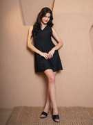 Crafted from soft, textured knitted fabric, this Western-inspired mini dress combines comfort with style. Featuring a flattering V-neckline and a sleeveless design, it enhances your silhouette while offering breathability for all-day wear. The A-line cut flows effortlessly, providing a relaxed yet chic look, perfect for casual outings or evening gatherings. Designed with a mini length, this dress adds a playful touch to your wardrobe while ensuring a comfortable fit.