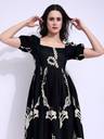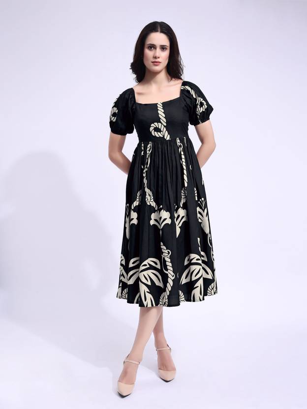 PURVAJA Women Fit and Flare Black Below Knee Dress
