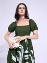 PURVAJA Women Fit and Flare Green Below Knee Dress