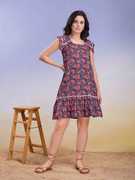 PURVAJA Women Fit and Flare Pink Above Knee/Mid Thigh Length Dress