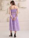 This chic cotton Western dress features a flattering solid color that exudes timeless elegance. With a playful drawstring shoulder, it allows for a customizable fit, while the tiered design adds movement and texture to the midi length. The sweetheart neckline offers a delicate and feminine touch, perfectly complemented by a smocked back for comfort and a form-fitting silhouette. Ideal for a relaxed yet stylish look, this dress effortlessly blends classic Western charm with modern sensibilit