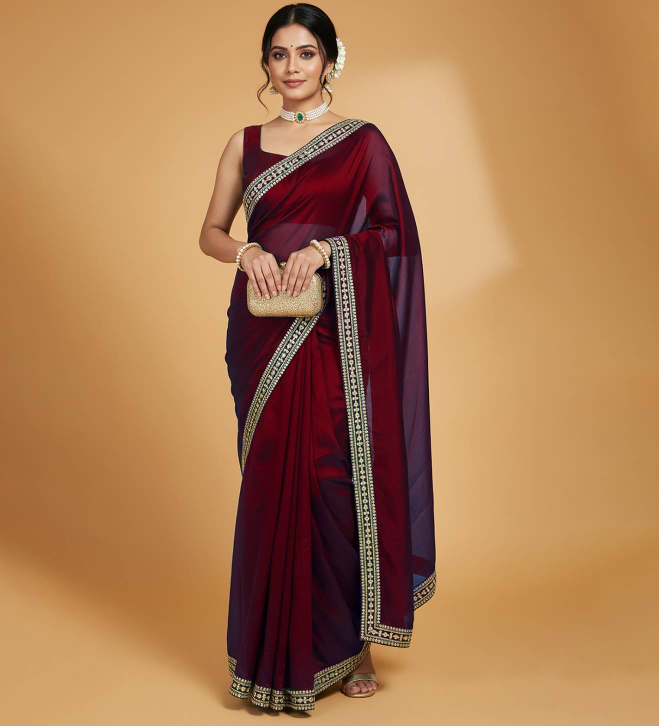 The saree is fully pre-stitched, allowing you to wear it in moments—no pleats to arrange, no hassle. It also comes with a 0.80 m unstitched Dupion Silk blouse piece, giving you the creative freedom to design your ideal blouse pattern.
