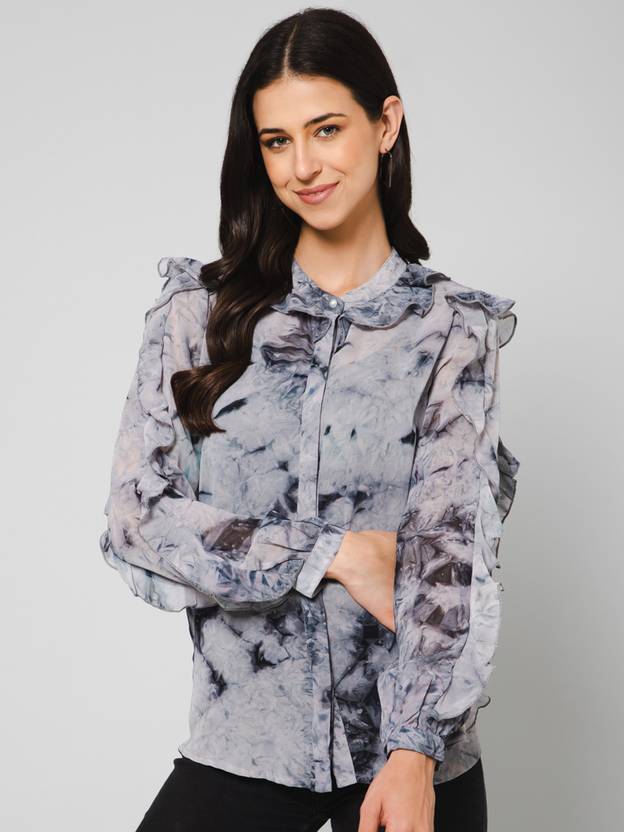 PURYS Women Dyed/Ombre Casual Grey Shirt