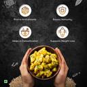 Known for its earthy flavor and aromatic warmth, cumin is a staple ingredient in Indian, Middle Eastern, and North African cuisines. Pushp Jeera is 100% pure and natural, free from artificial colors, preservatives, and additives. It is ISO 9001:2015 and ISO 22000:2018 certified, ensuring superior quality and hygiene standards in every pack.