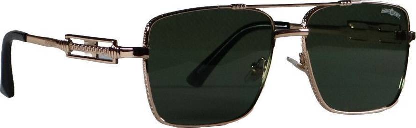 Pushpa Traders' Unisex Rectangular Sunglasses with green polycarbonate lenses and a golden metal frame offer a blend of style, comfort, and protection. Designed for everyday use and special occasions, these sunglasses provide exceptional UV protection and a chic aesthetic. Elevate your look while keeping your eyes safe with this versatile accessory.