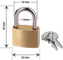 PuthaK 25mm Mini Brass Square Padlock 2 Keys Included Per Lock- 3 Combo Packs Padlock (Gold)