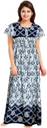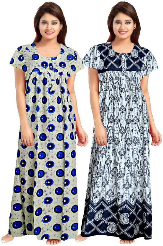 PVR offers this delicately embellished rich long Printed nighty dress for a sweat free comfort all night long. This a perfect pick for women who are fond of stylish nightwear. This Half sleeved nighty is a must have for your night wear needs. Made with 100% soft cotton to keep you cool all throughout. This beautiful nighty comes in free size and completely adjustable for 40-44 inches bust size.