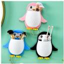 PYORIT Penguin Toothbrush Holder/Brush Stand/Pen Holder/Kitchen/Bedroom Plastic Toothbrush Holder (Multicolor, Wall Mount)