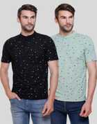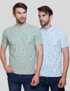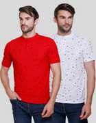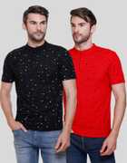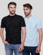 Make a statement with this Men's Regular Fit T-shirt. Made from a premium cotton blend fabric, it provides both comfort and style. The half sleeves offer a laid-back vibe, while the regular fit ensures a flattering silhouette. With its eye-catching polka printed pattern and distinctive mandarin collar, this t-shirt adds a touch of personality to any outfit. When you're relaxing at home or heading out for a night on the town, this versatile piece is a wardrobe essential.