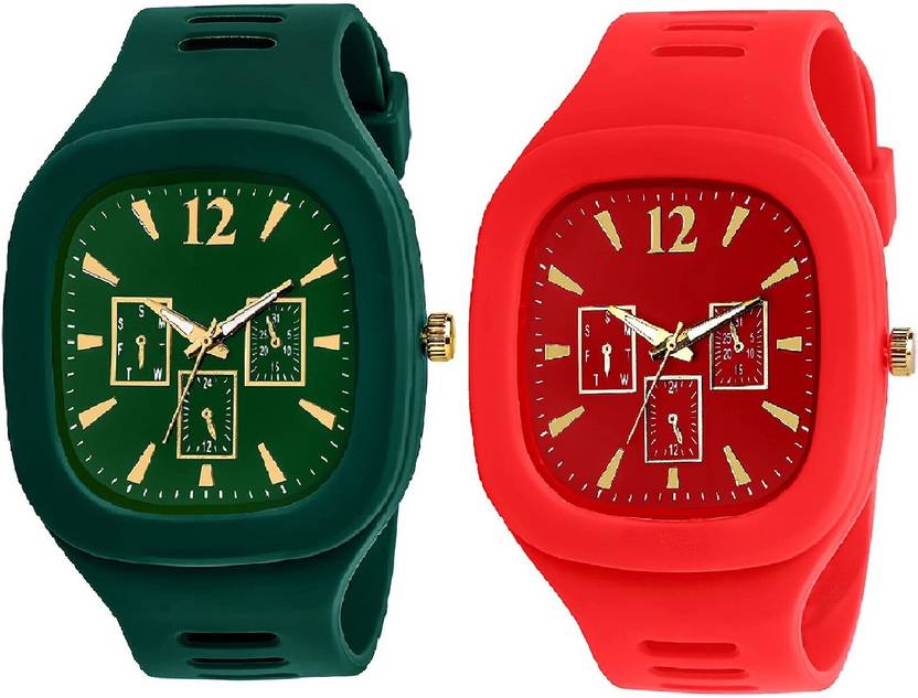 PYT-3 NEW DESIGN SQUARE DIAL SILICON STRAP RED & GREEN WATCH-FOR MEN'S & BOYS