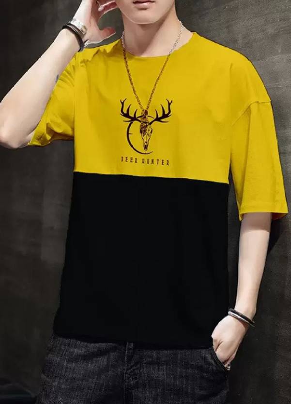Pytton cotton blend fabric round neck short sleeves loose fit regular wear color block pattern casual wear trendy look tshirt for men pack of one