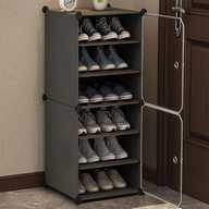 PYXBE 6-Shelf-2-Door Plastic Shoe Rack For Home Kids Shoe Stand Organizer Collapsible Plastic Shoe Rack (Grey, 6 Shelves, DIY(Do-It-Yourself))