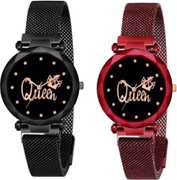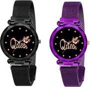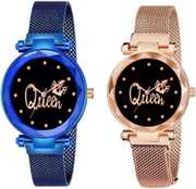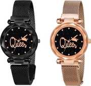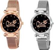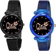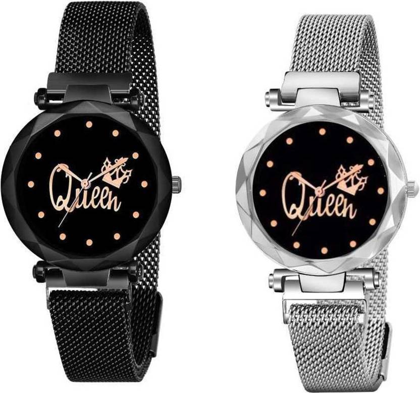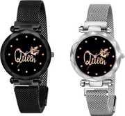 PZOZ Queen Dial Black and Silver combo Luxury Mesh Magnet Buckle Watches For girls Analog Watch - For Women