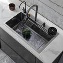 Q-IMAGE KITCHEN SINK WITH ANTI SCRATCH DESIGN INTEGRATED WATERFALL AND PULL-DOWN FAUCET SET/304 GRADE STAINLESS STEEL SINK WITH CUP WASHER,DRAIN BASKETS (30x18x9 INCH) Vessel Sink (Black)