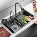 This washbasin set is made of high-quality stainless steel and combines remarkable durability with classic style. Since stainless steel is known for being resistant to rust, corrosion, and wear, you can be sure that the washbasin will continue to look like new for many years to come. Stainless steel gives the kitchen sink a stylish look, while the matte finish of the sink allows for ease of cleaning.