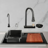 Q-IMAGE Kitchen sink SS 304 Grade 30" X 18" X 9" HANDMADE KITCHEN SINK PREMIUM QUALITY MATT FINISH Vessel Sink (Black)