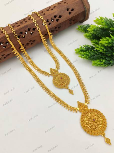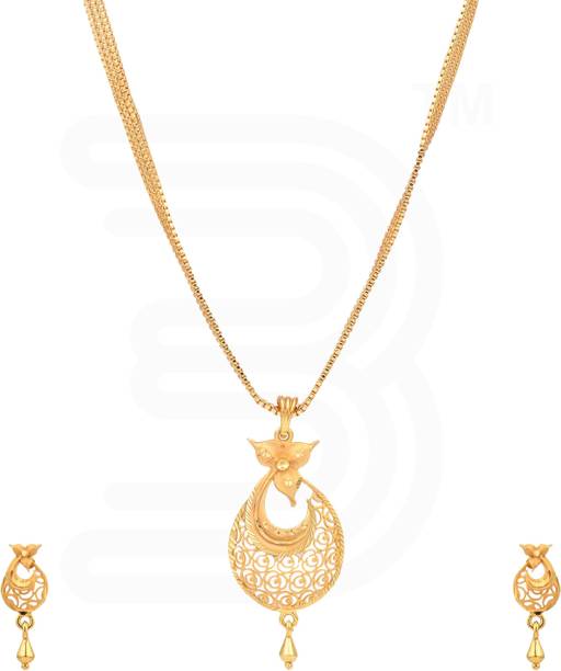 A sophisticated jewellery set can add an ornate touch to your overall get-up. That is why, if you are looking to amp up your ethnic look, you can check out the wide variety of gold set designs easily available online. The craftsmanship and intricate stylings of these designs further enhance the beauty of the ornaments, adding artistic value to them. These sets consist of varied jewellery pieces including trendy necklaces, chokers, earrings, mangalsutra sets, rani haar, and many more styles. Additionally, you can find jewellery sets embellished with pearls, beads, gemstones, etc. that give the jewellery a stunning appeal. These sets are available in a variety of price brackets; therefore, you can easily find suitable options as per your preference. With the option of online shopping, you can scroll through a plethora of ornaments featuring the latest designs in a matter of minutes and select the ones that best match your outfits, or are most suitable to your occasion. Make sure to check whether any offers are available before placing your order. Some of the brands providing elegant gold set designs include the likes of Brandsoon, S L Gold, Buy for Change LLP, Thrillz, Piah, and so on.