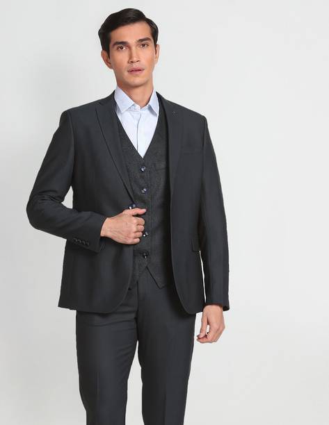 For a dashing and suave look without any additional hassle, you can be dressed in a breeze with a 3-piece suit in a well-tailored Western pattern. A suit consists of three parts, which are the jacket, waistcoat, and trousers. If you want to get a formal look for your event without compromising on style, then you can opt for a complete suit. All three pieces are generally tailored from the same fabric. These trendy clothing sets for men come in varied finishing touches. From differences in the collar style to the number of closure buttons in the waistcoat, the suits offer a classy appeal wherever you go. Furthermore, the suits can be selected from solid, chequered, printed, woven, striped, textured, and other patterns. You can explore the latest collection of suits for men online. In addition, you can select from a plethora of colour combinations, textures, and themes that best match your requirements. Explore the product descriptions to know more about the suits’ features, care techniques, and prices. Buy your preferred 3-piece suit online and get your order delivered to your doorstep. Shop from brands like Arrow, V Dot by Van Heusen, Raymond, Louis Philippe, Peter England, and many more.