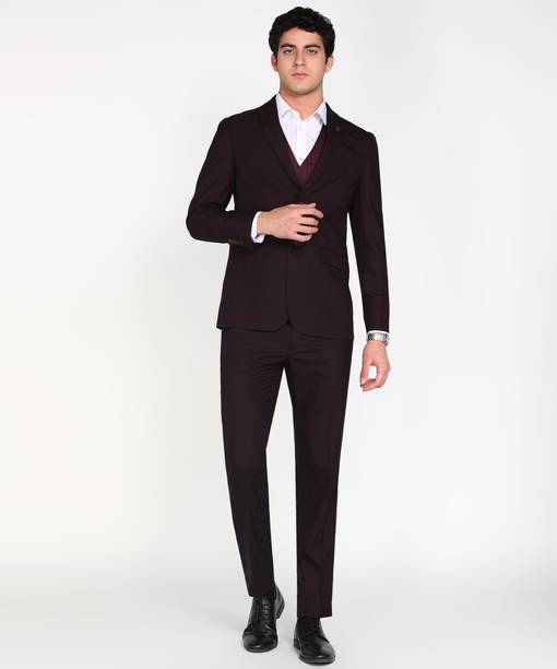 For a dashing and suave look without any additional hassle, you can be dressed in a breeze with a 3-piece suit in a well-tailored Western pattern. A suit consists of three parts, which are the jacket, waistcoat, and trousers. If you want to get a formal look for your event without compromising on style, then you can opt for a complete suit. All three pieces are generally tailored from the same fabric. These trendy clothing sets for men come in varied finishing touches. From differences in the collar style to the number of closure buttons in the waistcoat, the suits offer a classy appeal wherever you go. Furthermore, the suits can be selected from solid, chequered, printed, woven, striped, textured, and other patterns. You can explore the latest collection of suits for men online. In addition, you can select from a plethora of colour combinations, textures, and themes that best match your requirements. Explore the product descriptions to know more about the suits’ features, care techniques, and prices. Buy your preferred 3-piece suit online and get your order delivered to your doorstep. Shop from brands like Arrow, V Dot by Van Heusen, Raymond, Louis Philippe, Peter England, and many more.