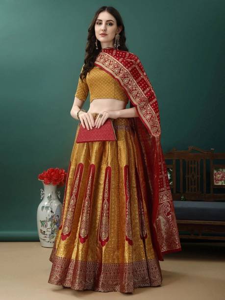 Dress your best for all traditional events in gorgeous A-line lehengas available online. You can choose this stylish three-piece ethnic wear in various fabrics, sleeve types, patterns, stitches, and colours. These come in a pack of lehenga, choli, and most often has a dupatta to complete the look. Adorn yourself in beautiful and trendy A-line lehenga cholis with embellished, embroidered, decorative stonework, and self-designed designs. These semi-stitched garments are ideal for festivals, semi-formal parties, religious occasions, and marriages. You can choose your lehenga fabric from options like satin, pure silk, net, jacquard, and silk blend. Soft choli materials such as silk-cotton blend, satin, silk, etc., make you feel comfortable and fashionable. Drape yourself in delicate dupattas made of pure silk, net, and many more soft fabrics. You can go for the round neck, boat neck, U-neck, or off-shoulder Cholis according to your unique style. These traditional outfits also come with many choices of sleeves like the half sleeve, full sleeve, sleeveless, three-fourth sleeve, and short-sleeved options. They are available for young girls aged eight and up and also for women. For the best traditional A-line Lehengas, check out popular brands like 21st Fashion, CRAZE N WORLD, A Little Fable, Saarah, and katariya collection. The information you are reading has been last updated on 01-Jan-26.