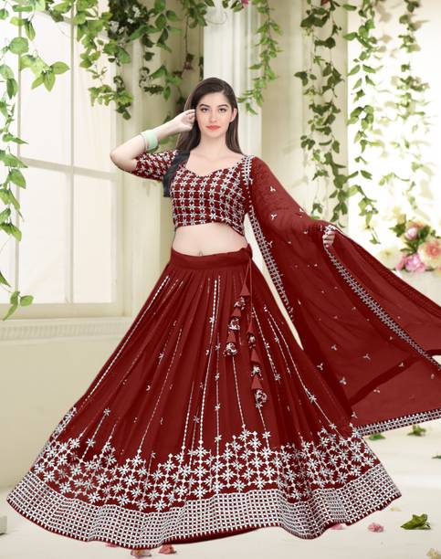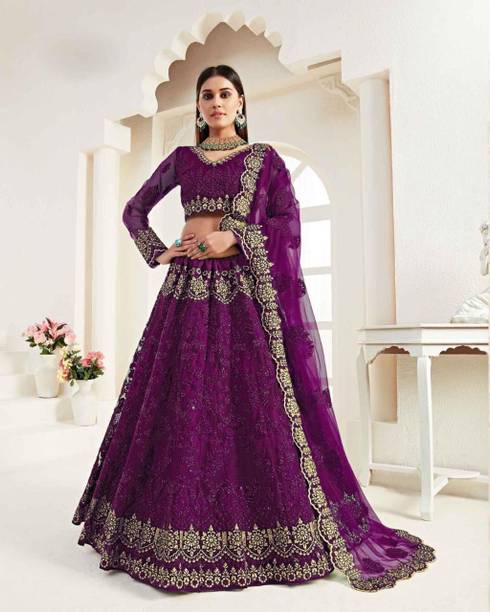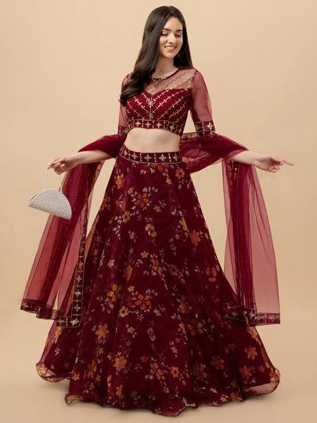 Dress your best for all traditional events in gorgeous A-line lehengas available online. You can choose this stylish three-piece ethnic wear in various fabrics, sleeve types, patterns, stitches, and colours. These come in a pack of lehenga, choli, and most often has a dupatta to complete the look. Adorn yourself in beautiful and trendy A-line lehenga cholis with embellished, embroidered, decorative stonework, and self-designed designs. These semi-stitched garments are ideal for festivals, semi-formal parties, religious occasions, and marriages. You can choose your lehenga fabric from options like satin, pure silk, net, jacquard, and silk blend. Soft choli materials such as silk-cotton blend, satin, silk, etc., make you feel comfortable and fashionable. Drape yourself in delicate dupattas made of pure silk, net, and many more soft fabrics. You can go for the round neck, boat neck, U-neck, or off-shoulder Cholis according to your unique style. These traditional outfits also come with many choices of sleeves like the half sleeve, full sleeve, sleeveless, three-fourth sleeve, and short-sleeved options. They are available for young girls aged eight and up and also for women. For the best traditional A-line Lehengas, check out popular brands like 21st Fashion, CRAZE N WORLD, A Little Fable, Saarah, and katariya collection. The information you are reading has been last updated on 05-Oct-25.