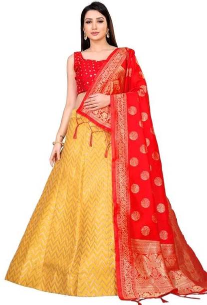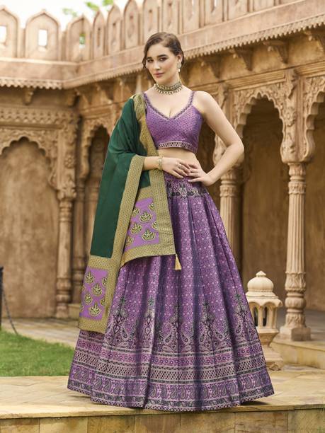 Dress your best for all traditional events in gorgeous A-line lehengas available online. You can choose this stylish three-piece ethnic wear in various fabrics, sleeve types, patterns, stitches, and colours. These come in a pack of lehenga, choli, and most often has a dupatta to complete the look. Adorn yourself in beautiful and trendy A-line lehenga cholis with embellished, embroidered, decorative stonework, and self-designed designs. These semi-stitched garments are ideal for festivals, semi-formal parties, religious occasions, and marriages. You can choose your lehenga fabric from options like satin, pure silk, net, jacquard, and silk blend. Soft choli materials such as silk-cotton blend, satin, silk, etc., make you feel comfortable and fashionable. Drape yourself in delicate dupattas made of pure silk, net, and many more soft fabrics. You can go for the round neck, boat neck, U-neck, or off-shoulder Cholis according to your unique style. These traditional outfits also come with many choices of sleeves like the half sleeve, full sleeve, sleeveless, three-fourth sleeve, and short-sleeved options. They are available for young girls aged eight and up and also for women. For the best traditional A-line Lehengas, check out popular brands like 21st Fashion, CRAZE N WORLD, A Little Fable, Saarah, and katariya collection. The information you are reading has been last updated on 07-Oct-25.