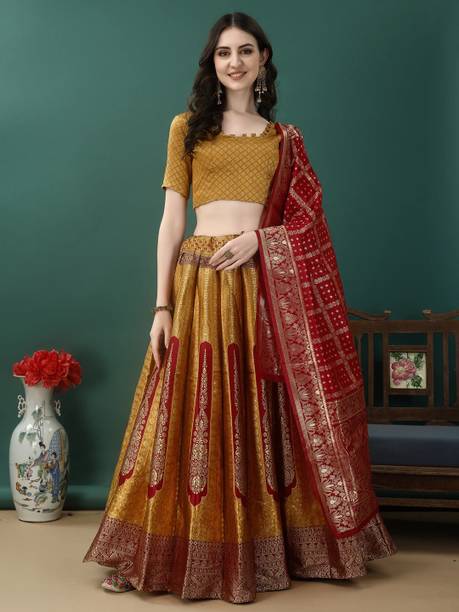 Dress your best for all traditional events in gorgeous A-line lehengas available online. You can choose this stylish three-piece ethnic wear in various fabrics, sleeve types, patterns, stitches, and colours. These come in a pack of lehenga, choli, and most often has a dupatta to complete the look. Adorn yourself in beautiful and trendy A-line lehenga cholis with embellished, embroidered, decorative stonework, and self-designed designs. These semi-stitched garments are ideal for festivals, semi-formal parties, religious occasions, and marriages. You can choose your lehenga fabric from options like satin, pure silk, net, jacquard, and silk blend. Soft choli materials such as silk-cotton blend, satin, silk, etc., make you feel comfortable and fashionable. Drape yourself in delicate dupattas made of pure silk, net, and many more soft fabrics. You can go for the round neck, boat neck, U-neck, or off-shoulder Cholis according to your unique style. These traditional outfits also come with many choices of sleeves like the half sleeve, full sleeve, sleeveless, three-fourth sleeve, and short-sleeved options. They are available for young girls aged eight and up and also for women. For the best traditional A-line Lehengas, check out popular brands like 21st Fashion, CRAZE N WORLD, A Little Fable, Saarah, and katariya collection. The information you are reading has been last updated on 11-Oct-25.