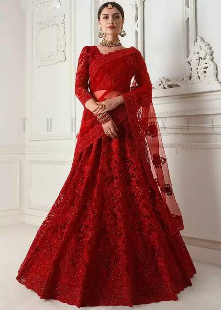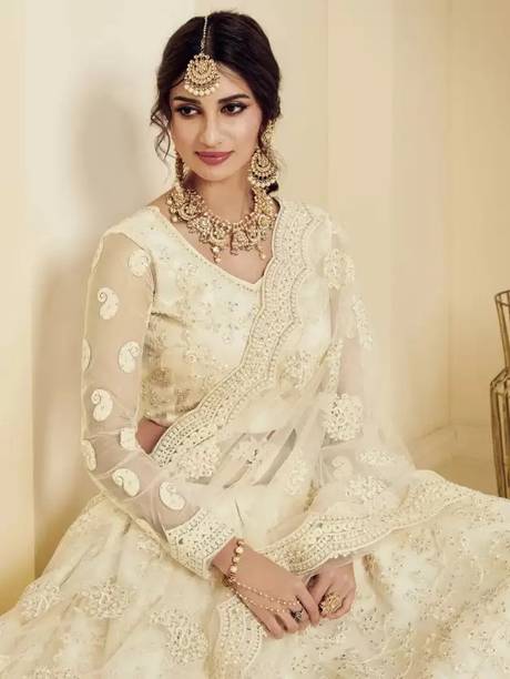 Dress your best for all traditional events in gorgeous A-line lehengas available online. You can choose this stylish three-piece ethnic wear in various fabrics, sleeve types, patterns, stitches, and colours. These come in a pack of lehenga, choli, and most often has a dupatta to complete the look. Adorn yourself in beautiful and trendy A-line lehenga cholis with embellished, embroidered, decorative stonework, and self-designed designs. These semi-stitched garments are ideal for festivals, semi-formal parties, religious occasions, and marriages. You can choose your lehenga fabric from options like satin, pure silk, net, jacquard, and silk blend. Soft choli materials such as silk-cotton blend, satin, silk, etc., make you feel comfortable and fashionable. Drape yourself in delicate dupattas made of pure silk, net, and many more soft fabrics. You can go for the round neck, boat neck, U-neck, or off-shoulder Cholis according to your unique style. These traditional outfits also come with many choices of sleeves like the half sleeve, full sleeve, sleeveless, three-fourth sleeve, and short-sleeved options. They are available for young girls aged eight and up and also for women. For the best traditional A-line Lehengas, check out popular brands like 21st Fashion, CRAZE N WORLD, A Little Fable, Saarah, and katariya collection. The information you are reading has been last updated on 07-Oct-25.