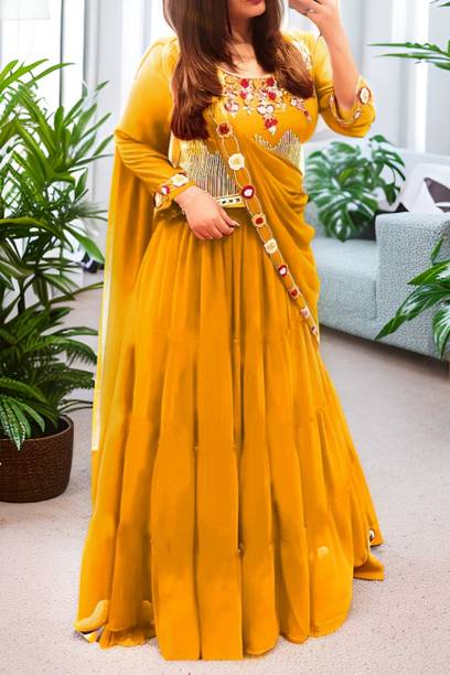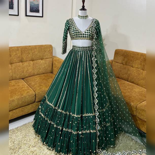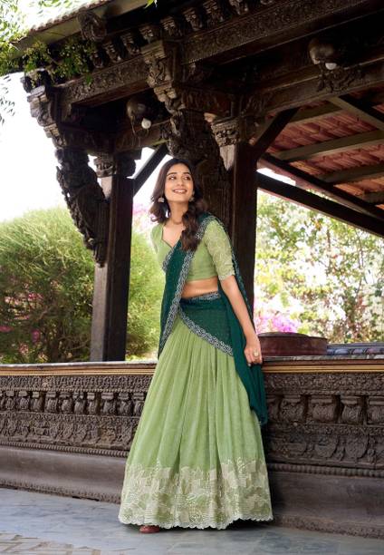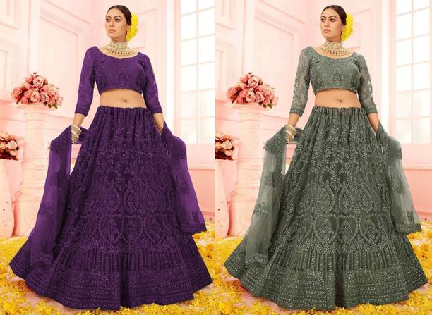 Dress your best for all traditional events in gorgeous A-line lehengas available online. You can choose this stylish three-piece ethnic wear in various fabrics, sleeve types, patterns, stitches, and colours. These come in a pack of lehenga, choli, and most often has a dupatta to complete the look. Adorn yourself in beautiful and trendy A-line lehenga cholis with embellished, embroidered, decorative stonework, and self-designed designs. These semi-stitched garments are ideal for festivals, semi-formal parties, religious occasions, and marriages. You can choose your lehenga fabric from options like satin, pure silk, net, jacquard, and silk blend. Soft choli materials such as silk-cotton blend, satin, silk, etc., make you feel comfortable and fashionable. Drape yourself in delicate dupattas made of pure silk, net, and many more soft fabrics. You can go for the round neck, boat neck, U-neck, or off-shoulder Cholis according to your unique style. These traditional outfits also come with many choices of sleeves like the half sleeve, full sleeve, sleeveless, three-fourth sleeve, and short-sleeved options. They are available for young girls aged eight and up and also for women. For the best traditional A-line Lehengas, check out popular brands like 21st Fashion, CRAZE N WORLD, A Little Fable, Saarah, and katariya collection. The information you are reading has been last updated on 10-Oct-25.
