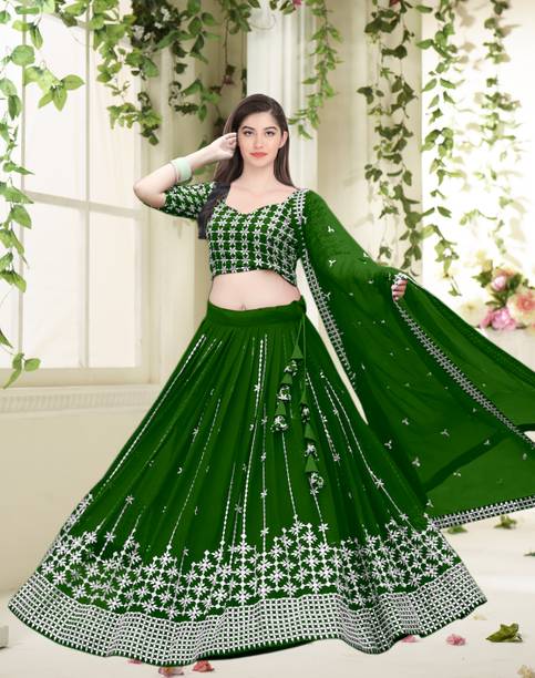 Dress your best for all traditional events in gorgeous A-line lehengas available online. You can choose this stylish three-piece ethnic wear in various fabrics, sleeve types, patterns, stitches, and colours. These come in a pack of lehenga, choli, and most often has a dupatta to complete the look. Adorn yourself in beautiful and trendy A-line lehenga cholis with embellished, embroidered, decorative stonework, and self-designed designs. These semi-stitched garments are ideal for festivals, semi-formal parties, religious occasions, and marriages. You can choose your lehenga fabric from options like satin, pure silk, net, jacquard, and silk blend. Soft choli materials such as silk-cotton blend, satin, silk, etc., make you feel comfortable and fashionable. Drape yourself in delicate dupattas made of pure silk, net, and many more soft fabrics. You can go for the round neck, boat neck, U-neck, or off-shoulder Cholis according to your unique style. These traditional outfits also come with many choices of sleeves like the half sleeve, full sleeve, sleeveless, three-fourth sleeve, and short-sleeved options. They are available for young girls aged eight and up and also for women. For the best traditional A-line Lehengas, check out popular brands like 21st Fashion, CRAZE N WORLD, A Little Fable, Saarah, and katariya collection. The information you are reading has been last updated on 08-Oct-25.