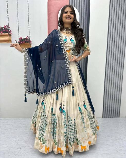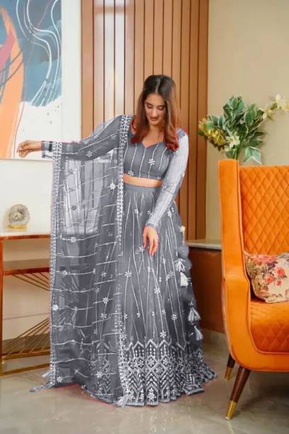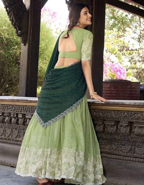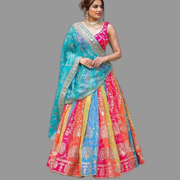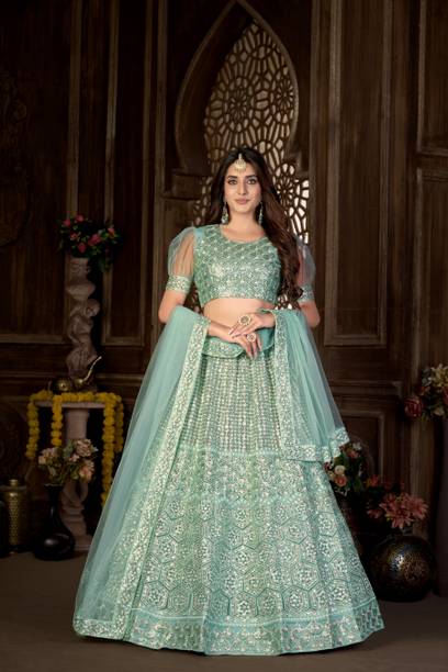 Dress your best for all traditional events in gorgeous A-line lehengas available online. You can choose this stylish three-piece ethnic wear in various fabrics, sleeve types, patterns, stitches, and colours. These come in a pack of lehenga, choli, and most often has a dupatta to complete the look. Adorn yourself in beautiful and trendy A-line lehenga cholis with embellished, embroidered, decorative stonework, and self-designed designs. These semi-stitched garments are ideal for festivals, semi-formal parties, religious occasions, and marriages. You can choose your lehenga fabric from options like satin, pure silk, net, jacquard, and silk blend. Soft choli materials such as silk-cotton blend, satin, silk, etc., make you feel comfortable and fashionable. Drape yourself in delicate dupattas made of pure silk, net, and many more soft fabrics. You can go for the round neck, boat neck, U-neck, or off-shoulder Cholis according to your unique style. These traditional outfits also come with many choices of sleeves like the half sleeve, full sleeve, sleeveless, three-fourth sleeve, and short-sleeved options. They are available for young girls aged eight and up and also for women. For the best traditional A-line Lehengas, check out popular brands like 21st Fashion, CRAZE N WORLD, A Little Fable, Saarah, and katariya collection. The information you are reading has been last updated on 02-Oct-25.