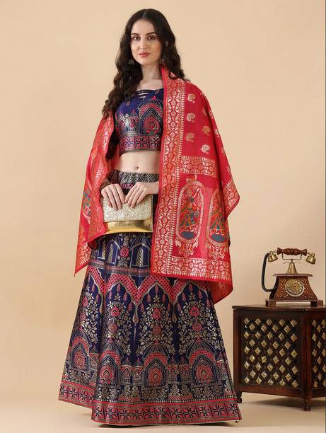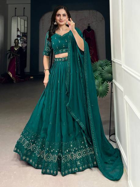 Dress your best for all traditional events in gorgeous A-line lehengas available online. You can choose this stylish three-piece ethnic wear in various fabrics, sleeve types, patterns, stitches, and colours. These come in a pack of lehenga, choli, and most often has a dupatta to complete the look. Adorn yourself in beautiful and trendy A-line lehenga cholis with embellished, embroidered, decorative stonework, and self-designed designs. These semi-stitched garments are ideal for festivals, semi-formal parties, religious occasions, and marriages. You can choose your lehenga fabric from options like satin, pure silk, net, jacquard, and silk blend. Soft choli materials such as silk-cotton blend, satin, silk, etc., make you feel comfortable and fashionable. Drape yourself in delicate dupattas made of pure silk, net, and many more soft fabrics. You can go for the round neck, boat neck, U-neck, or off-shoulder Cholis according to your unique style. These traditional outfits also come with many choices of sleeves like the half sleeve, full sleeve, sleeveless, three-fourth sleeve, and short-sleeved options. They are available for young girls aged eight and up and also for women. For the best traditional A-line Lehengas, check out popular brands like 21st Fashion, CRAZE N WORLD, A Little Fable, Saarah, and katariya collection. The information you are reading has been last updated on 08-Oct-25.