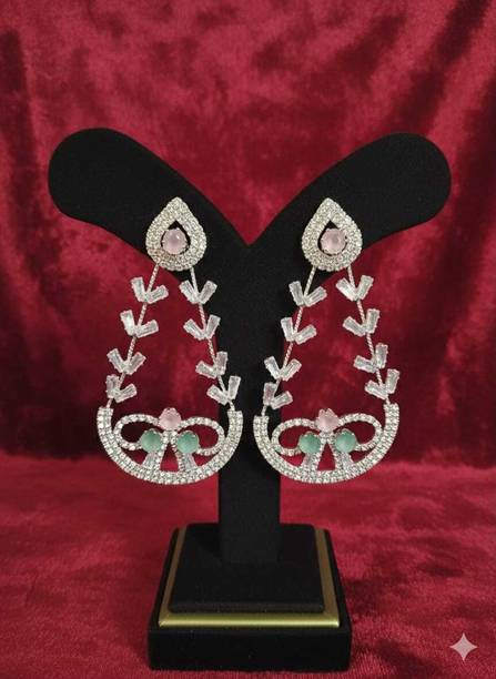 f.) American Diamond Meenakari Long Chain Diamond Alloy Dangle Earring